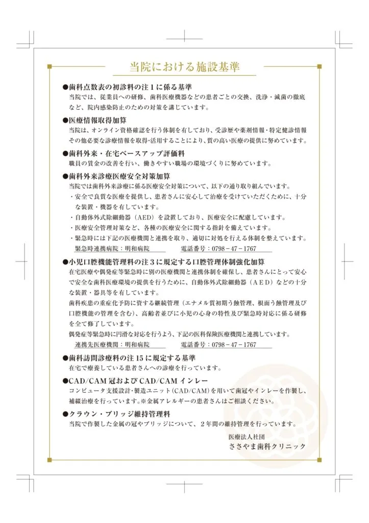 ささやま歯科クリニックでは充分な治療環境を整備し、予防を重視し、生体に優しい治療を行い、口腔から全身への健康に配慮した医療を提供することをお約束します。